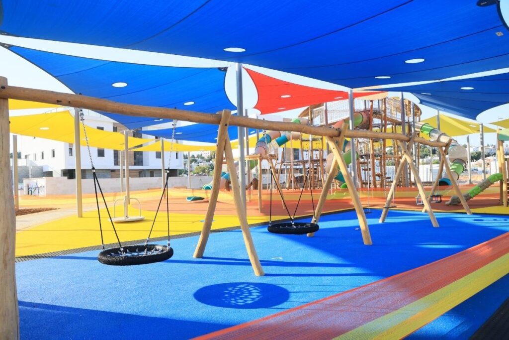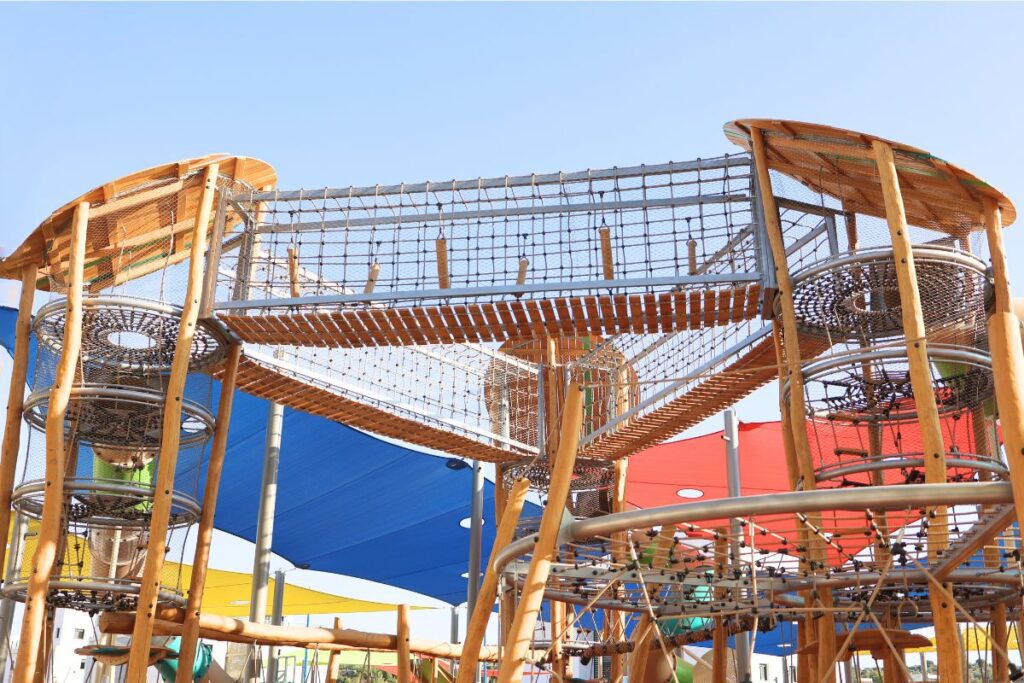 The design draws inspiration from the surrounding seascape: climbing elements that echo nearby cliffs, a small boat for imaginative “sailing” play, and swings positioned to take in sweeping ocean views. Flowing lines and natural tones reflect waves and sea breezes, creating a calm yet engaging play environment. From architectural and engineering planning through custom production and installation, the project was guided with precision, focusing on durability, safety, and a memorable play experience.