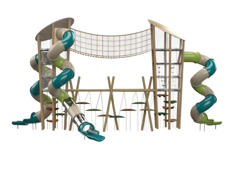 The Arya C2 stands as a breathtaking, architectural play system that masterfully fuses natural elegance with bold physical challenges, creating an extraordinary playground centerpiece that transforms outdoor spaces into realms of adventure and discovery. Crafted from premium Robinia wood and powder-coated galvanized stainless steel, this remarkable structure embodies both rugged charm and luxurious design sensibilities, ensuring it becomes a standout feature that enhances the aesthetic appeal of any public space while delivering uncompromising performance and durability.