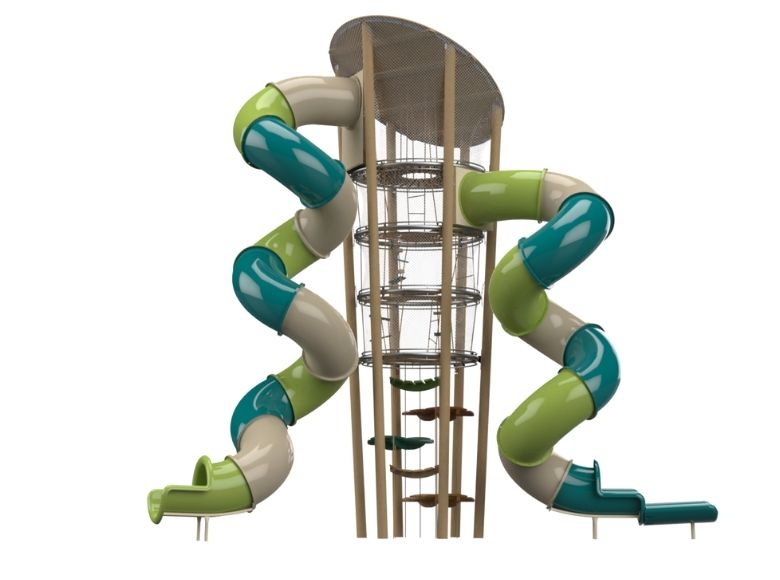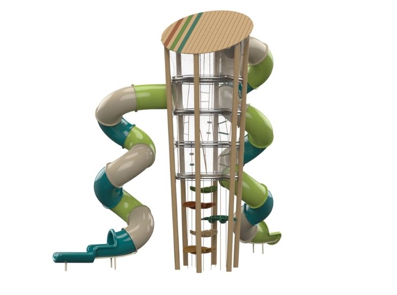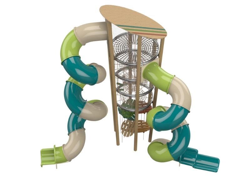 At the heart of the design is a tall central tower, offering a rich and dynamic play experience that includes climbing elements for agility and strength, slides for excitement and speed, and balance features for coordination and focus. Its open and transparent structure encourages free movement and exploration while supporting social interaction, imaginative play, and full-body engagement. in addition, the Arya D1 promotes motor skill development, teamwork, and self-confidence. Durable materials are designed for long-term outdoor use. Compact yet visually impactful, it’s ideal as a focal point in any modern park or natural playground.