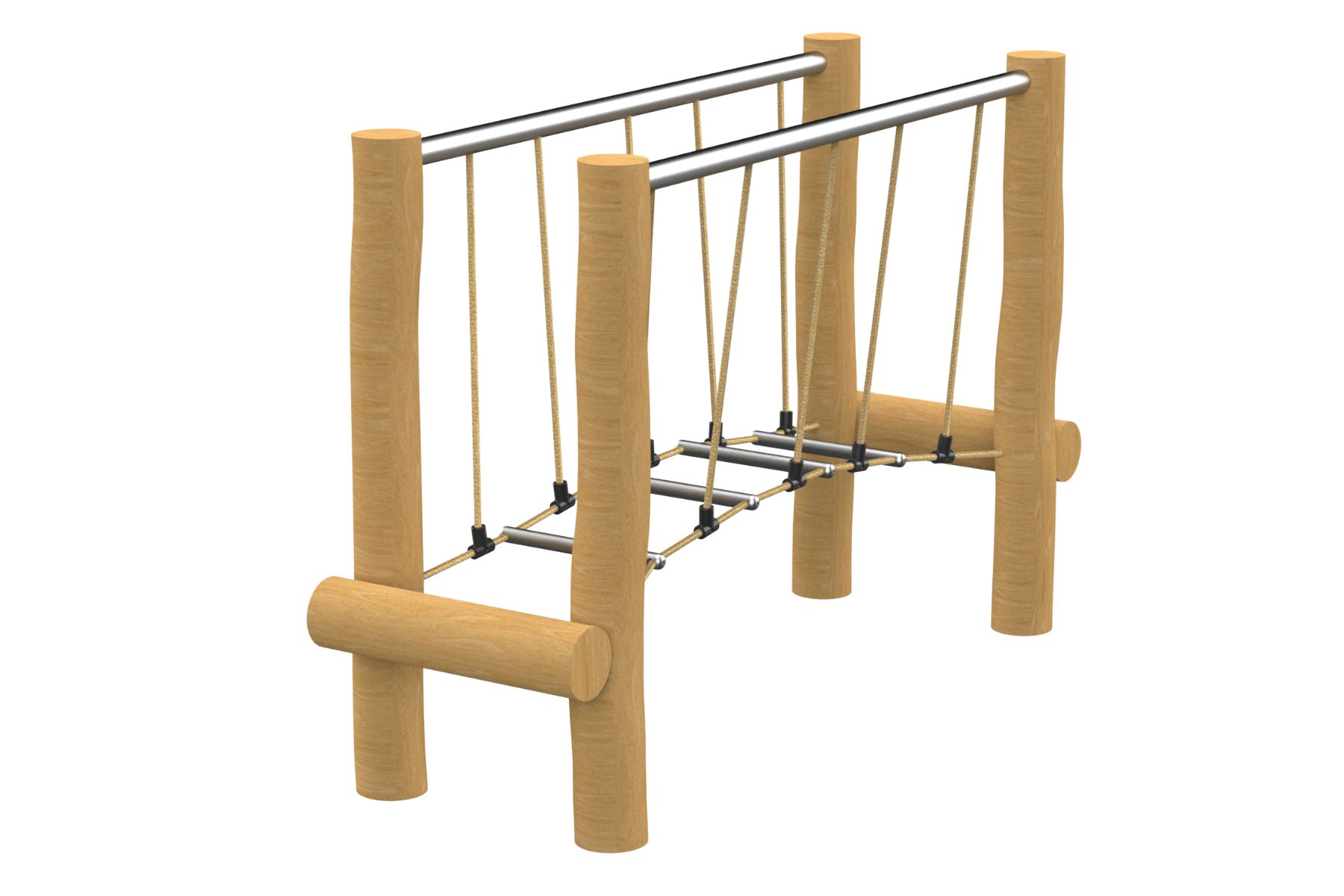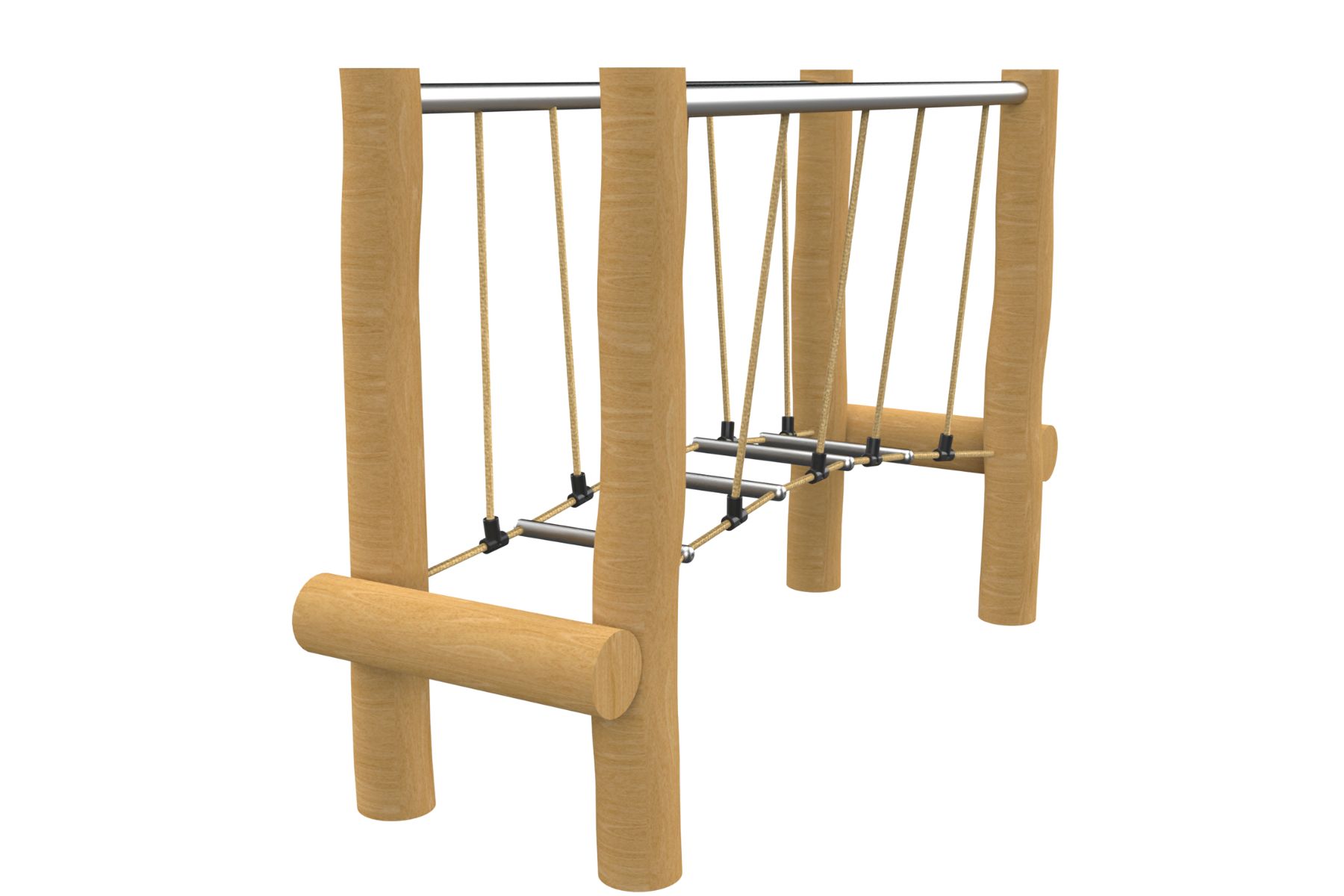 The Aston Rope Bridge combines natural European Robinia Wood with stainless steel and cables. It offers a challenging yet safe experience of crossing a swaying rope bridge. The stainless steel handrails ensure a firm grip, while the Robinia Wood steps provide stability during the crossing. This structure is especially suited for balance and movement challenges.