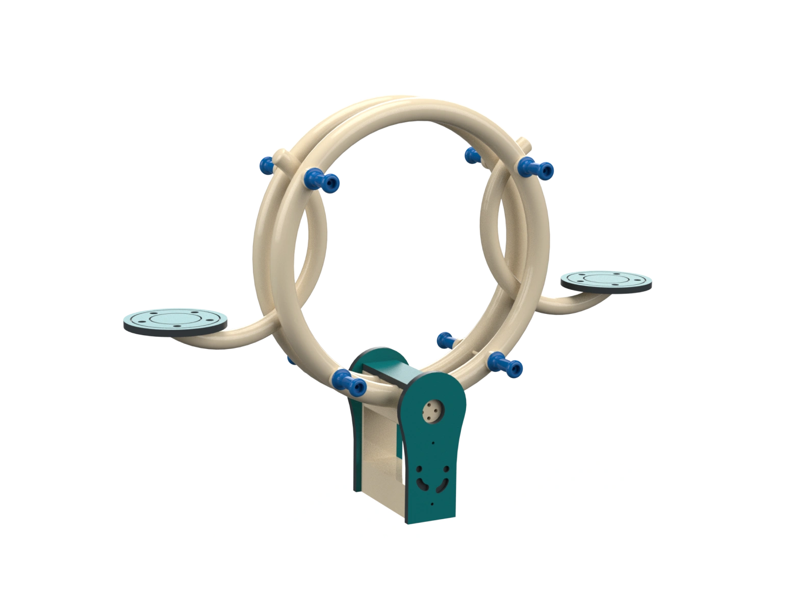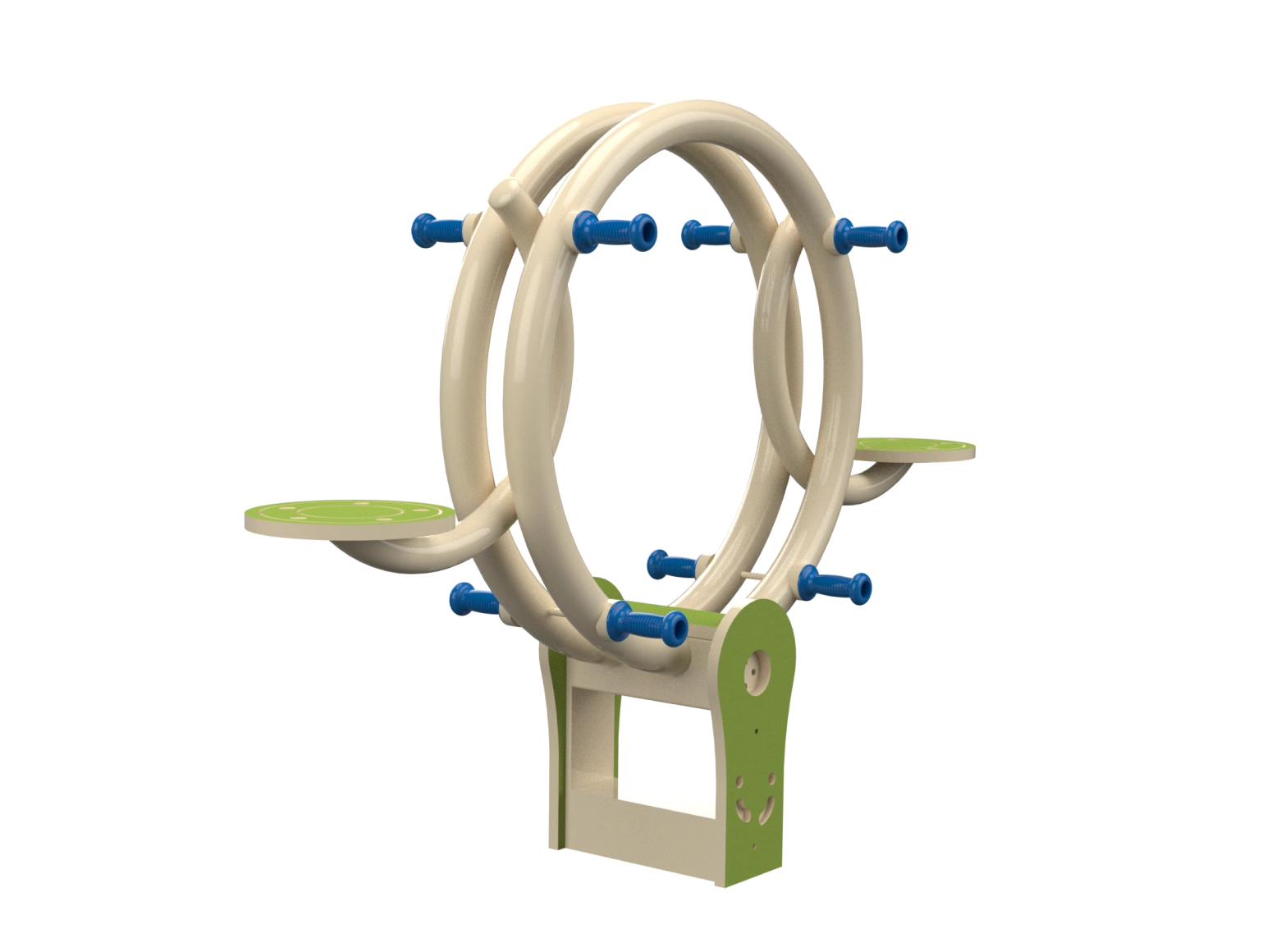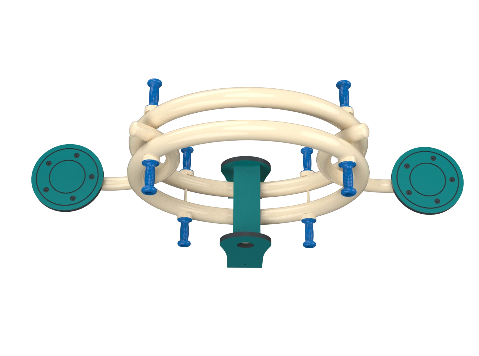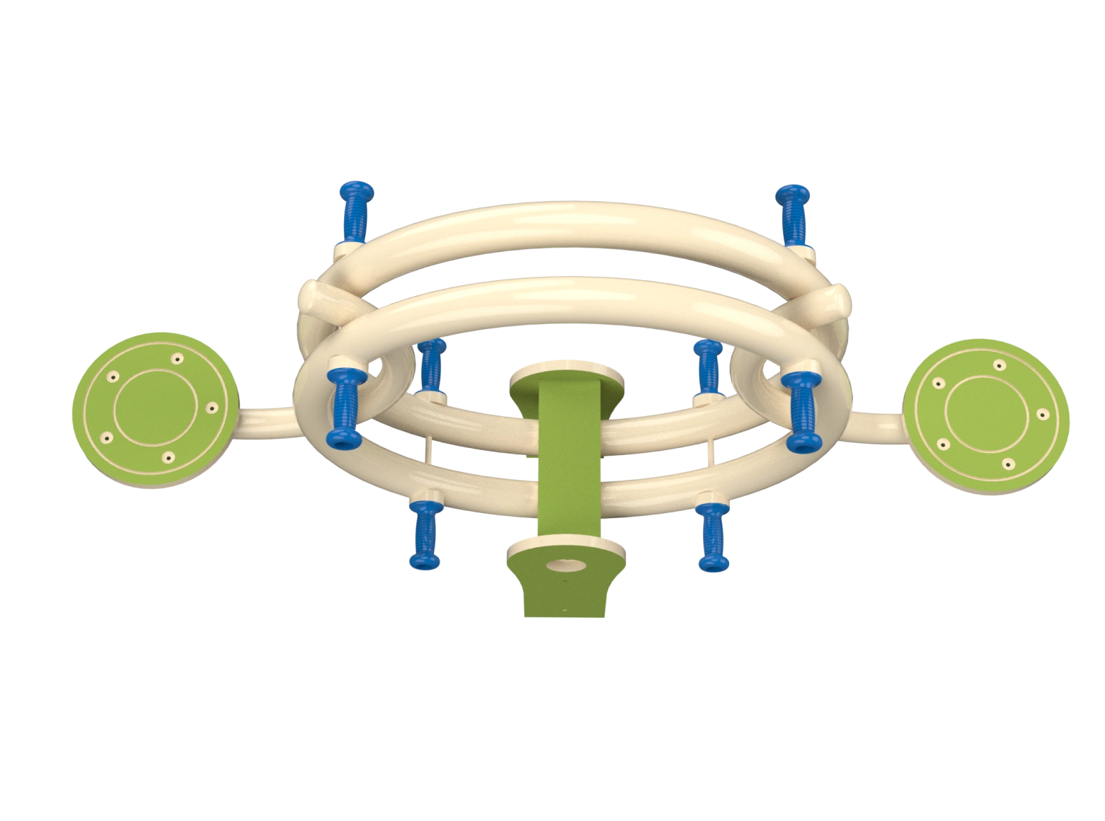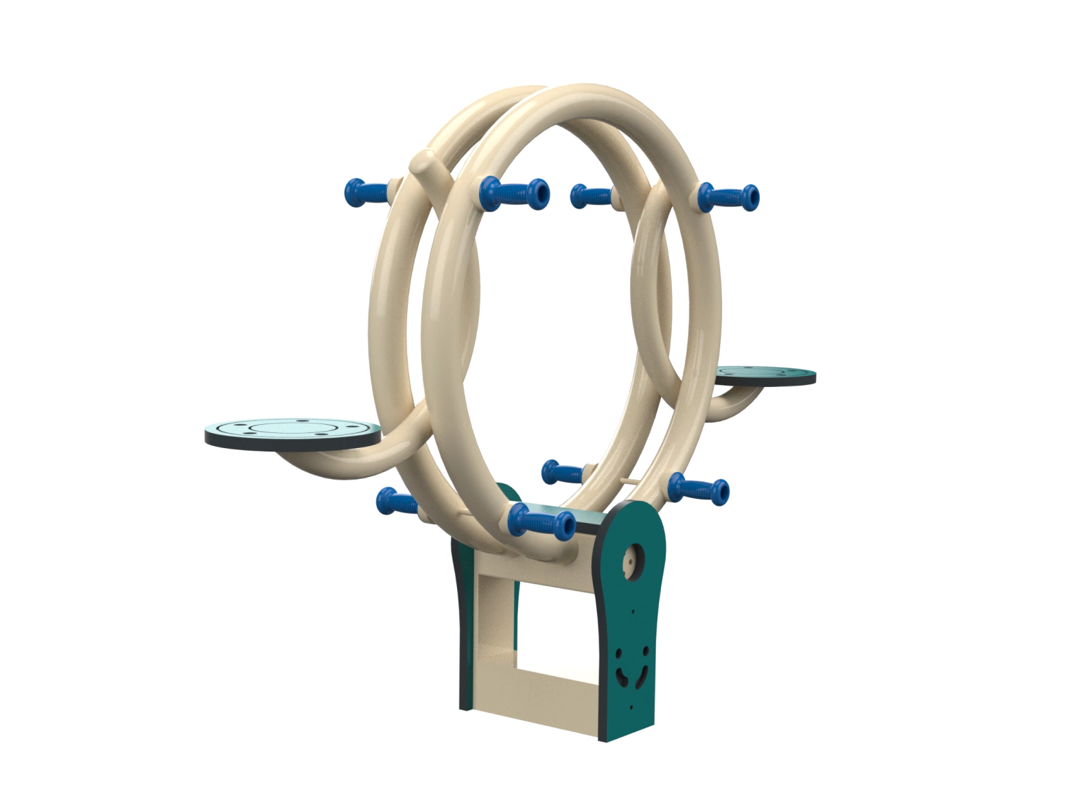 Metal seesaw for two-person up-and-down and balance play, made of galvanized metal and HDPE. The seesaw has two seats and handrails. Develops communication skills, self-confidence, and balance.