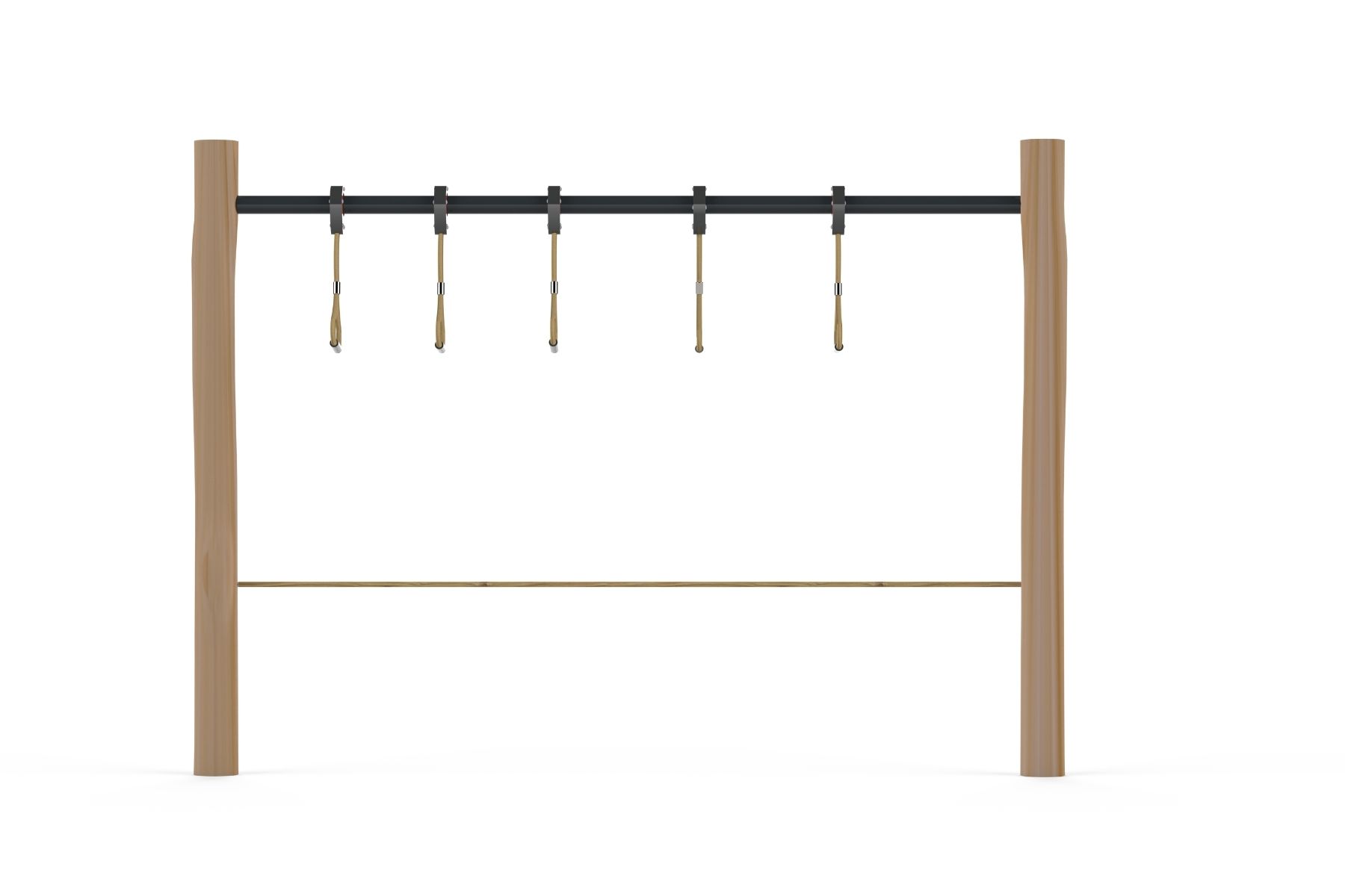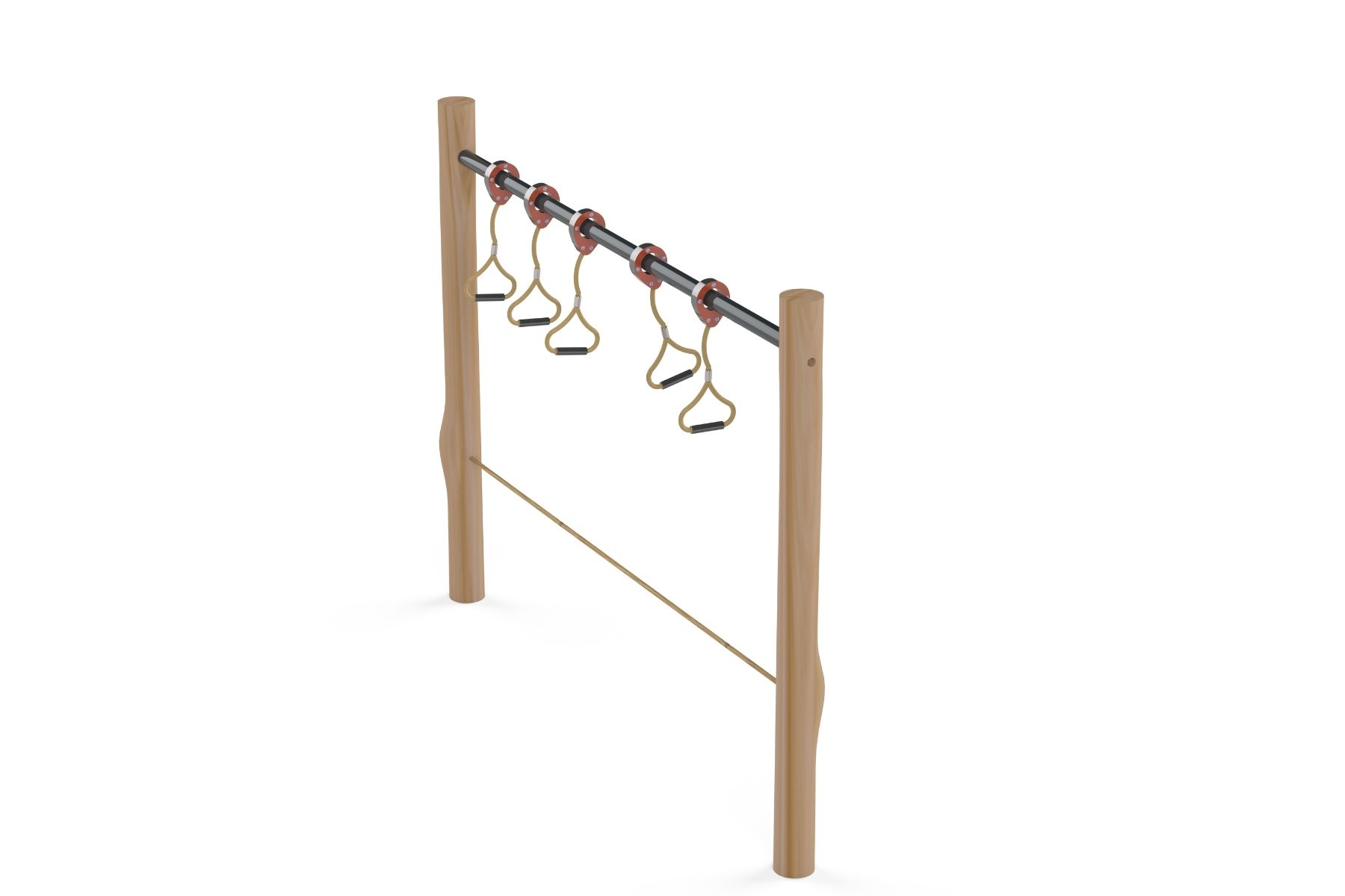 The Indiana structure is part of the Robinia Wood fitness course designed for challenging and adventurous play. It features handholds that provide climbing and movement challenges for children, aimed at developing strength, balance, and coordinated movement. Indiana can be used as part of a complete obstacle course or as an independent structure that combines fun and challenge in playgrounds and public parks.