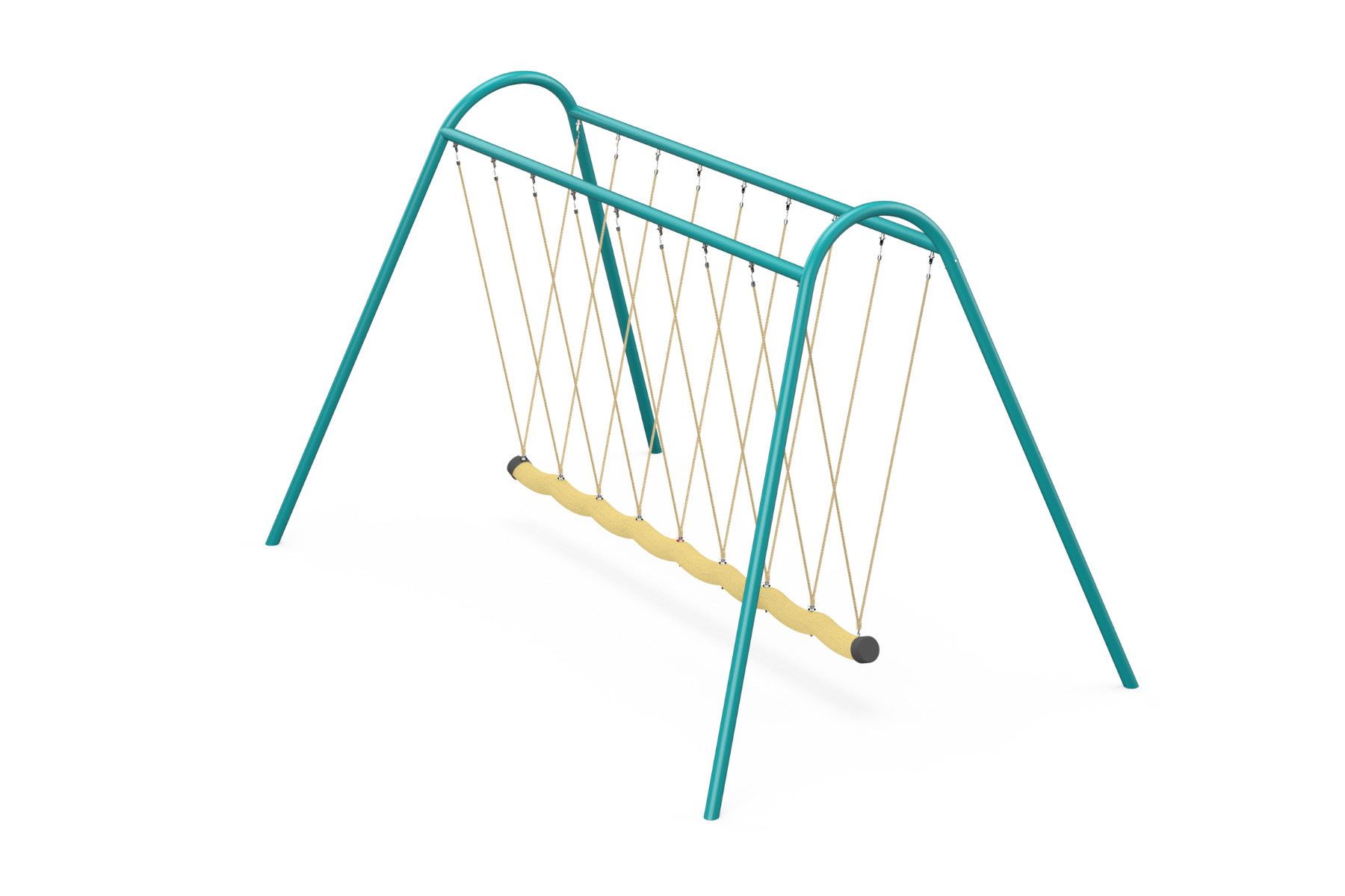 A lateral swing designed for simultaneous play by up to 8 users, either seated or standing. The seat is covered with a soft rope that is pleasant to the touch, and each user has access to two handgrip ropes that attach the seat to the frame. The swing is one of the most important elements in a playground. The joy of swinging and the momentum developed while improving balance and coordination are fundamental and essential to a child’s development. The Rope Snake Swing offers added value in social interaction when multiple children play together, synchronizing the direction and intensity of the swinging motion, and can also be challenging as it allows users to choose between sitting and standing.