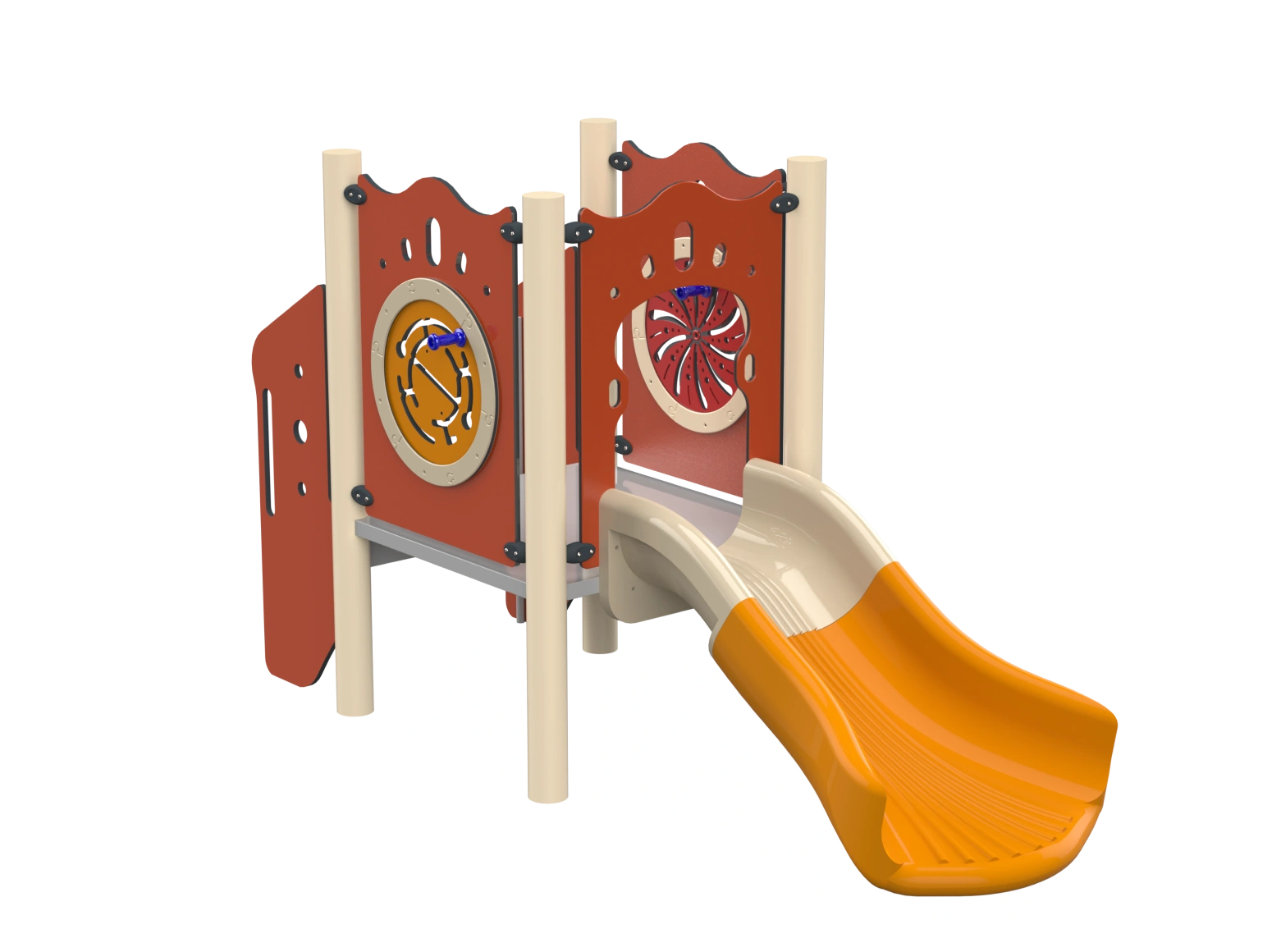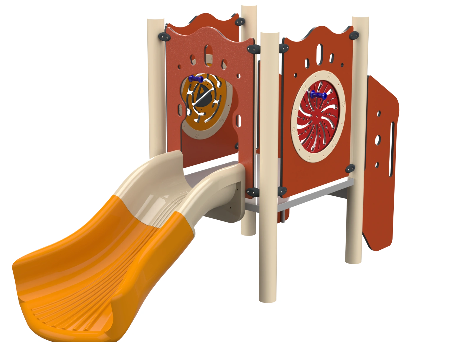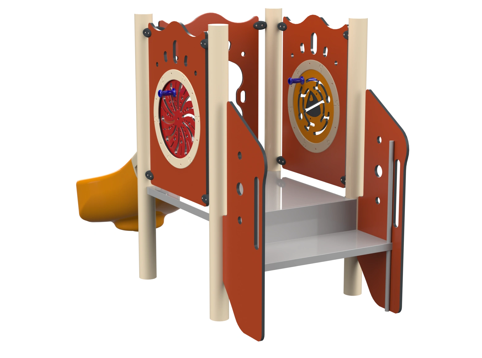 The Sedona is an inclusive play structure for toddlers, designed to provide an enjoyable and safe play experience for young children. The structure includes an accessible toddler slide, accessible stairs, and play panels that invite the little ones to explore, play, and develop their motor and social skills. Sedona’s design is specially adapted to the needs of toddlers, with emphasis on full accessibility and maximum safety, making it an ideal place for play and learning in a supportive and imagination-stimulating environment.