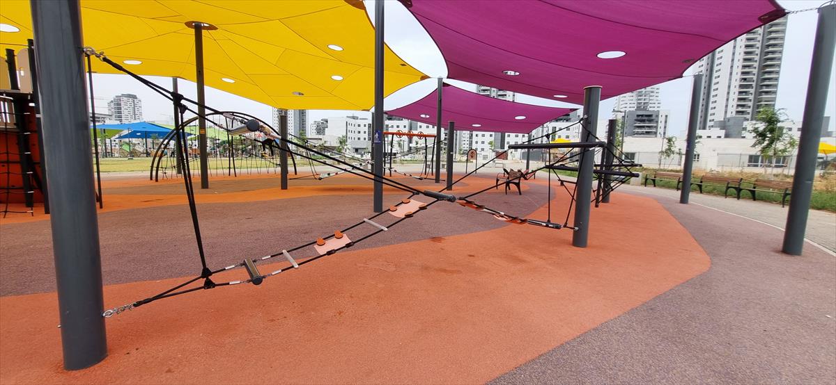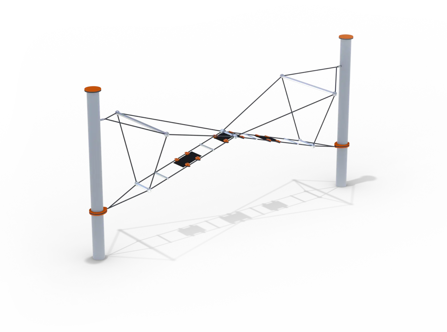 The Sunshine Skyway Bridge C is designed for climbing and traversing games while maintaining balance. It encourages users to overcome climbing challenges by relying on arm and leg strength, developing coordination, endurance, and balance. Sunshine Skyway Bridge C can be incorporated as part of a full course or as an independent element.